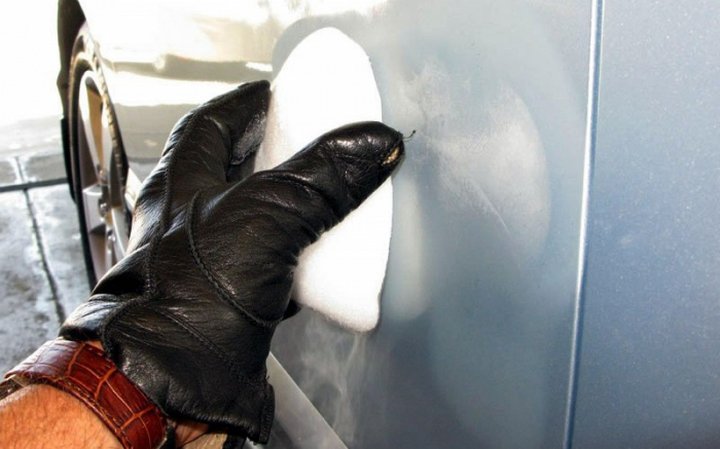 Резкая перемена температуры принудит вмятину на вашей машине выпрямиться. Возьмите кусочек сухого льда и протрите пространство вмятины, за ранее приложив к нему кусочек фольги. Не забудьте надеть крепкие перчатки, чтоб лед не повредил кожу рук.