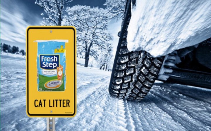 Если вы когда-нибудь застрянете в машине на оледенелой дороге, вы еще спасибо скажите за этот совет. Рассыпьте наполнитель вокруг ведущих колес, сделанный из бентонитовой глины либо кремнезема, он даст нужную опору для шин. Тем, кто ездит на заднеприводных карах, большенный мешок кошачьего наполнителя в багажнике обеспечит наилучшее сцепление на скользкой дороге.