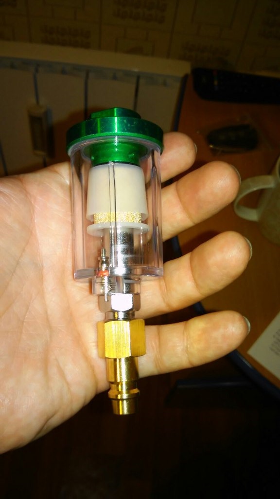 фильтр в разрыв меж компрессором и шлангом, и на конце шланга еще небольшой влагоотделитель для пулика повесь, опосля него быстросьем под сам пулик . манометр доп при твоей комлектуже не нужен! дешевенькие все травят, ну и мешаться под ручкой будет, у теюя и так их 2 — один на компрессоре + 2-ой на основном влагоотделителе с регулятором, я не думаю что компрессор у тебя в другом помещении будет так что излишний 3-ий манометр. шланг гемморойный …твердый весьма, его основной минус это то что он по полу дугами идет и при полном покрасе можно им просто пороги цепануть так что постоянно нужно глядеть чтобы он за спиной был и ногой-рукой придерживать.по поводу дюзы на грунтовочнике…2.0 — не жутко, просто заместо пропорции 60/40 замешиваешь скажем 70/30 либо 80/20