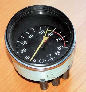 Авто тахометр устанавливается на авто для измерения частоты вращения коленвала. В зоне делений от 1 до 8 отображается частота вращения мотора, а стрелка в красноватой зоне показывает, что режим является небезопасным для мотора. Тахометр применяется для того, чтоб обороты мотора не превосходили очень допустимые значения, что упрощает выбор передачи и очень продлевает ресурс мотора. При приближении стрелки тахометра к красноватой отметке, рекомендуется переключиться на завышенную передачу.
