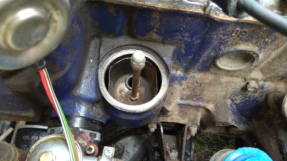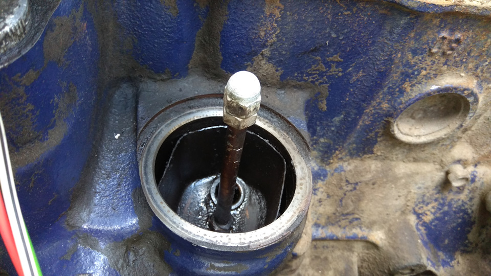 Для того чтоб вытащить маслоотделитель вымакнул трапкой масло, на шпильку навернул 2 гайки М8, законтрогаил и выкрутил шпильку. Потом плоскогубцами вынимаем маслоотделитель.