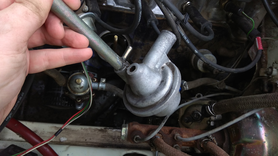 Чтоб уменьшить попадание масла в кастрюлю решил поглядеть что у нас в маслоотделителе, отыскать пламягаситель, который должен ограничивать попадание масла из сапуна в кастрюлю, а заодно под настроить холостой на карбюраторе.