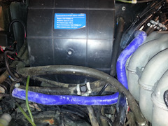 Дальше подсоединил патрубок с расширительного бочка в старенькое пространство обратки с печки, фото нет, но вы разберетесь, там тройник практически за движком.