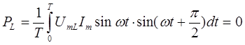 Моментальная мощность рL, обусловленная энергией магнитного поля индуктивности, циркулирует меж сетью и катушкой. Ее среднее значение за период равно нулю: