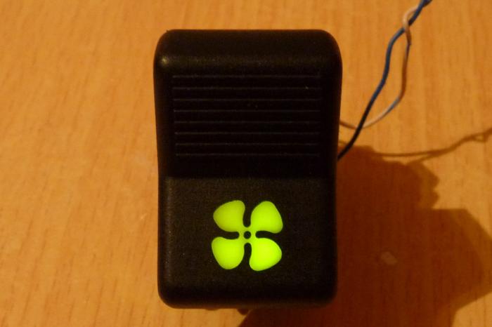 Данная функция чисто украсит Ваш кар, а практического смысла никакого не иммеет. Сейчас изготовлено всего только две клавиши: включение вентилятора отопителя и клавиша включения подогрева заднего стекла. Данные клавиши были куплены в авто магазине. Вначале данне клавиши имеют грязновато-белый цвет, но светят они довольно ярко. Для того, чтоб они сияли не очень, приклейте две прозрачные плёнки либо купите колпачок на данные клавиши (можно отыскать также в авто-магазине). Зелёный цвет на фото ниже благодаря колпачкам. Клавиши лучше ставить от кара Нива (т.е ВАЗ 2121).
