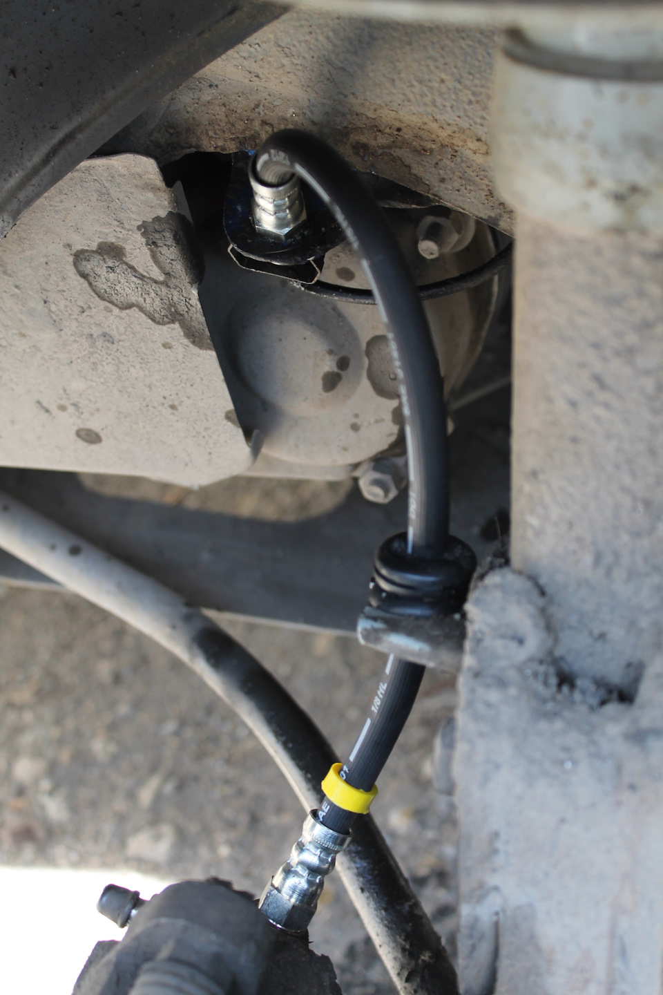 Опосля установки шланга, доливаем тормозную жидкость в расширительный бачок и производим прокачку тормозов, что бы изгнать воздух скопившийся в трубках.
