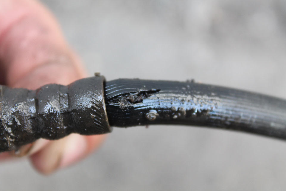 - железной щеткой очищаем от грязищи пространство соединения шланга с трубкой;