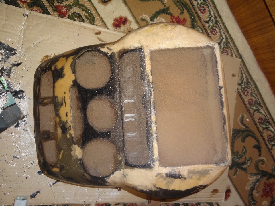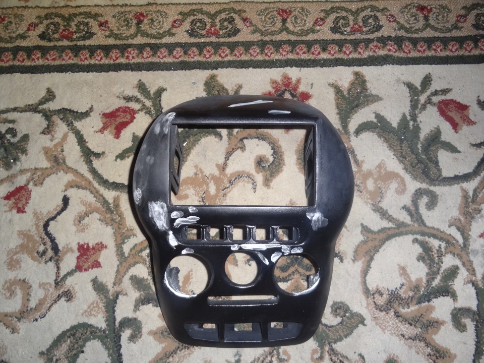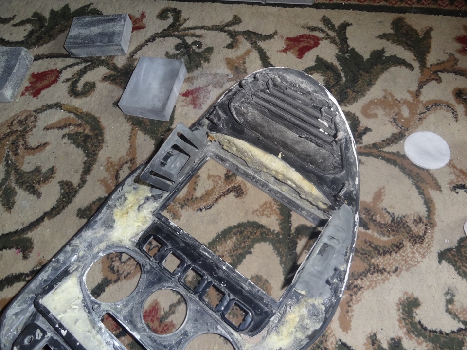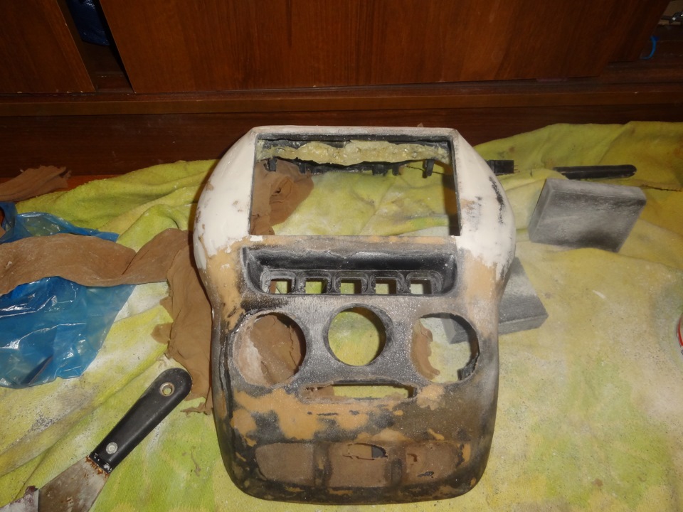 Моя переделанная ранее консоль 2 дин меня мягко говоря не побуждала, вышло не весьма, виной тому почти все, невозможность ровно обрезать кожу по кнопочкам, окружностям, и рамкой магнитолы, криво поставлены разъемы под клавиши, недостатки по шпатлевке… хотя наверное для первого разы было не так и плохо.