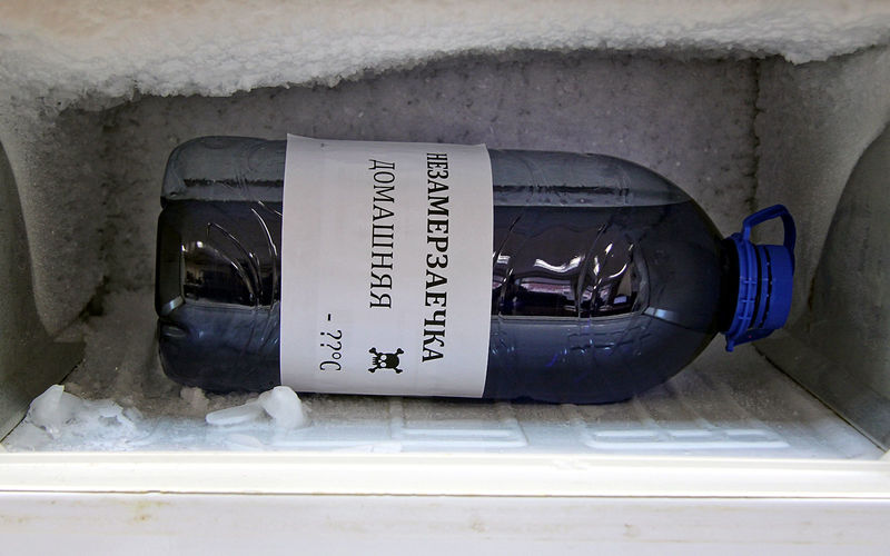 — Чтоб проверить свойство и надежность незамерзайки, которую Вы сделали без помощи других либо приобрели в магазине, нужно налить мало воды в маленькую тару и выставить ее на несколько часов на мороз. Если жидкость промерзнет либо воспримет гелеобразную густоту, то нужно усилить свойство незамерзайки, добавив в нее алкоголесодержащий продукт.