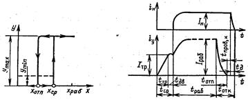 На рис. 4.3 даны зависимости входного iyи выходного iн характеристик электромагитного реле от времени. Входным параметром в этом случае является ток в обмотке реле, выходным — ток в управляемой цепи (цепи перегрузки).