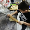 — достал кусочек термокожи, нанёс клей кисточкой на неё и на дверную карту