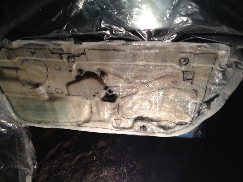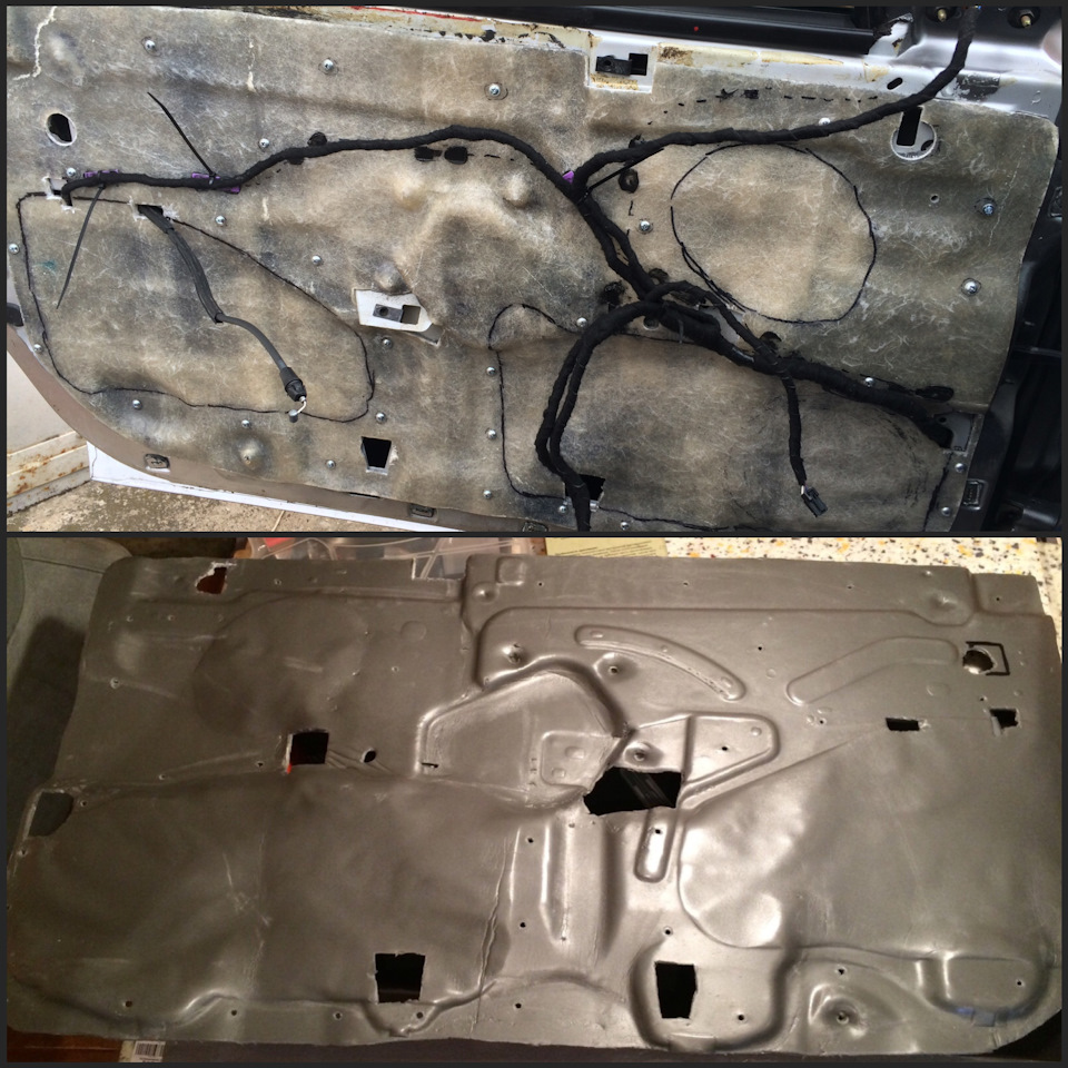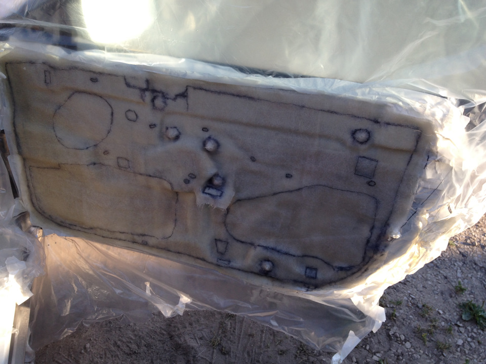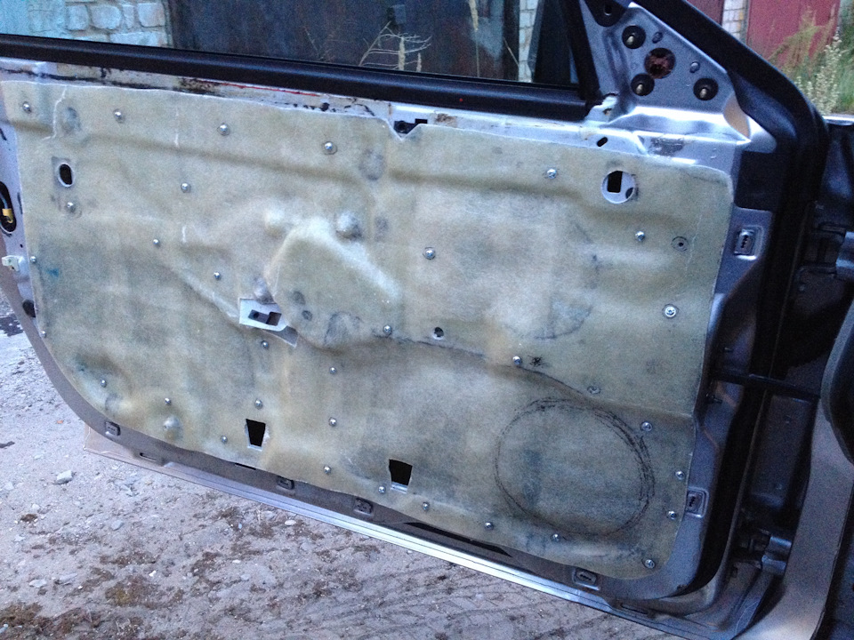 Так как на дверях есть несколько довольно огромных технологических отверстий, а клеить их виброй не наш вариант.