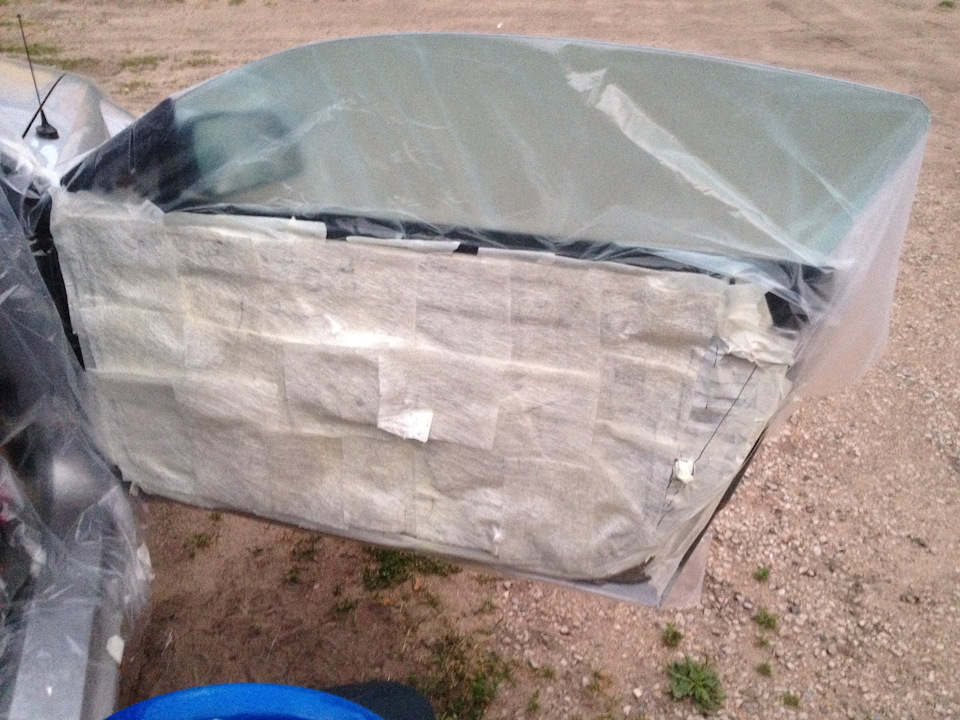 - Сверху накладываем стеклоткань, разглаживаем его аккуратненько, чтоб не осталось складок и материал стопроцентно обхватил изделие.