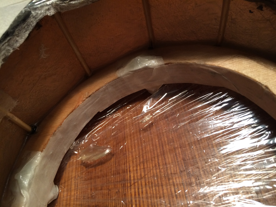 Дальше берем клей и склеиваем все три слоя. Клеить необходимо кропотливо, чтоб не осталось вольных мест, так как это в предстоящем может стать предпосылкой излишних звуков и тресков.