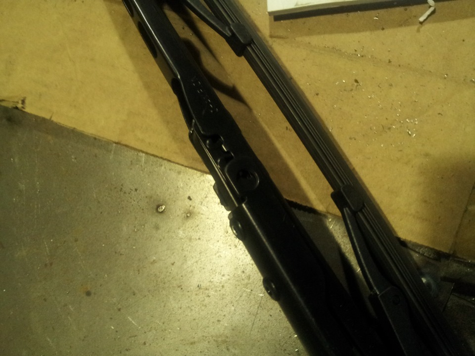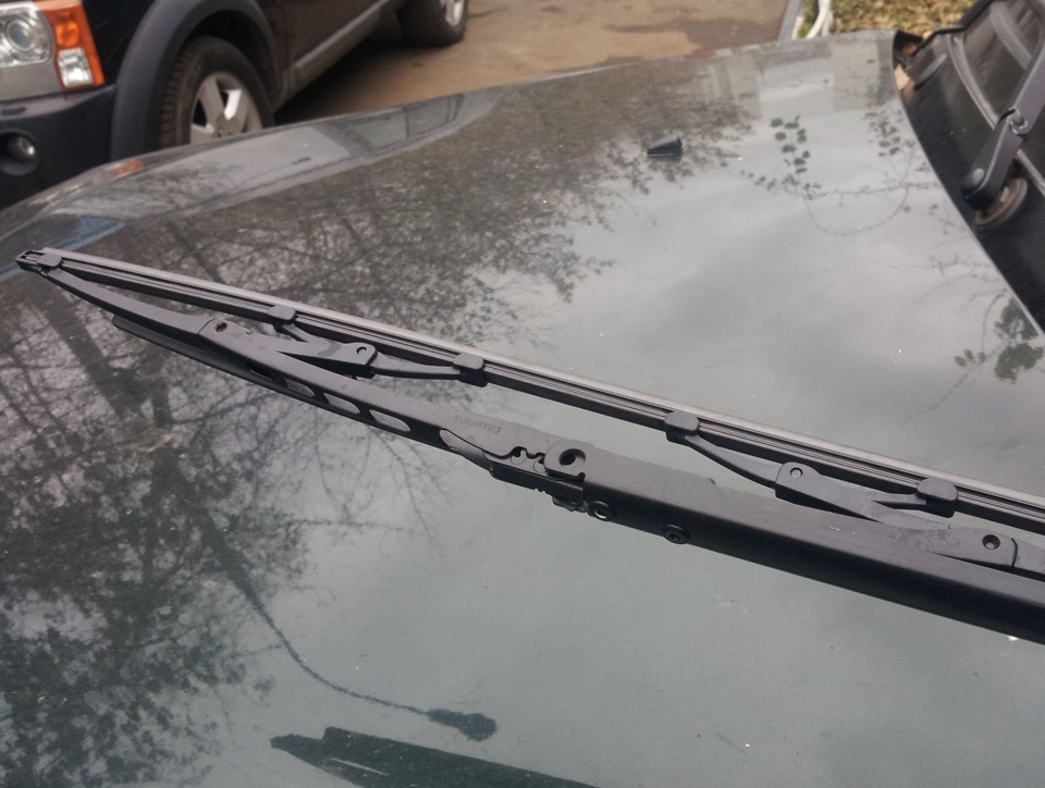 Да, китайские не покупайте, у их достаточно слабенькая пружина и, похоже, что-то не так с шириной — щетка болтается. Щетки 450 мм, наиболее длинноватые у меня воткнуть не вышло, цепляют концами за уплотнитель. Поводки гнутся по месту, там мало совершенно, правый можно даже и не гнуть совсем, левый подгибается градусов на 10.