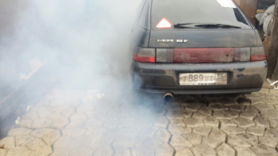 Как еще найти, что пробита прокладка ГБЦ ВАЗ-2115? Признаки неисправности – наличие белоснежного дыма из глушителя при работающем движке. По мере прогревания мотора он не теряется. Это свидетельствует о наличии конденсата в газах.