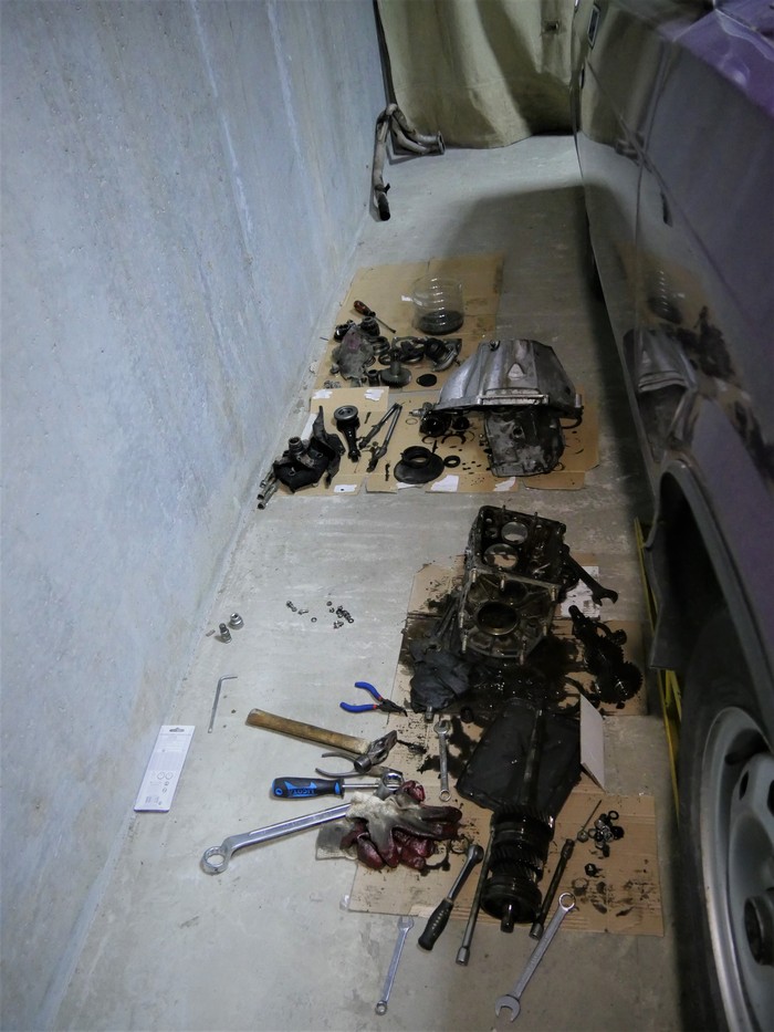 Начать следует с того, что с самого момента покупки было понятно, что оба сальника на коробке текут и она уже на столько обросла грязюкой, что беднягу уже и не видно было совсем. Конкретно по данной для нас причине и было принято решение лезть в коробку. Но уж если снимать, то стоит как-то затюнить и попытаться создать машинку резвее.