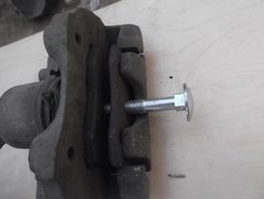 Это две старенькые колодки стертые, в одной просверлено отверстие и нарезана резьба, можно и не порезать, вставляешь их как обычно и болтом разжимаешь тормозной цилиндр.Хотя эта операция отлично проводится при помощи монтировки либо балоника.