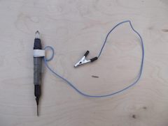 Изготовлен из болта, гайки, шайбы и обрезка трубы.