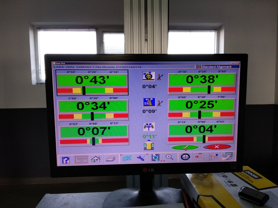 У нас можно дешево создать развал-схождение колес кара, провести диагностику ходовой части, проверить управляющее управление и геометрию кузова на компьютерном щите.