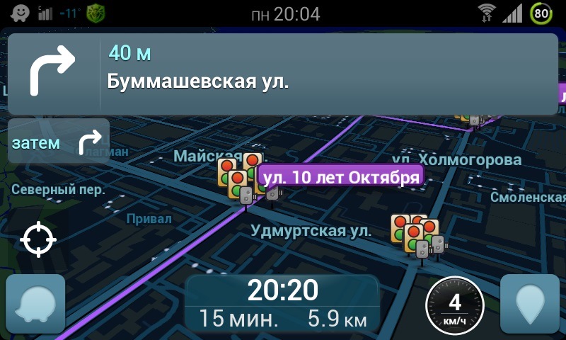 Из плюсов Yandex’а — приятный дамский глас, Гугла — озвучиваются наименования улиц, куда следует повернуть. Отдельный малоизвестный соперник — Waze. Сюда бы добавить номера домов (который просто нет, лишь улицы и важные объекты) — и был бы наилучшим навигатором. Пробки указывает как среднюю скорость остальных юзеров, и весьма понравилось, что предупреждает голосом о всех камерах (даже не высокоскоростных), + есть индикация цен на бензин и расстояние до наиблежайшей заправки. Чем больше вы проехали при помощи него и выслали отчетов — тем больше у вас ранг.