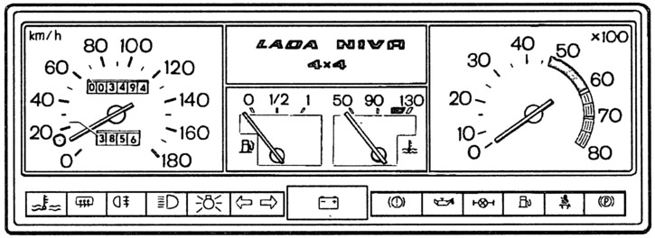 - индикаторы приборной панели (уровень ОЖ и масла, положение карбюраторной заслонки, тормоз стояночный);