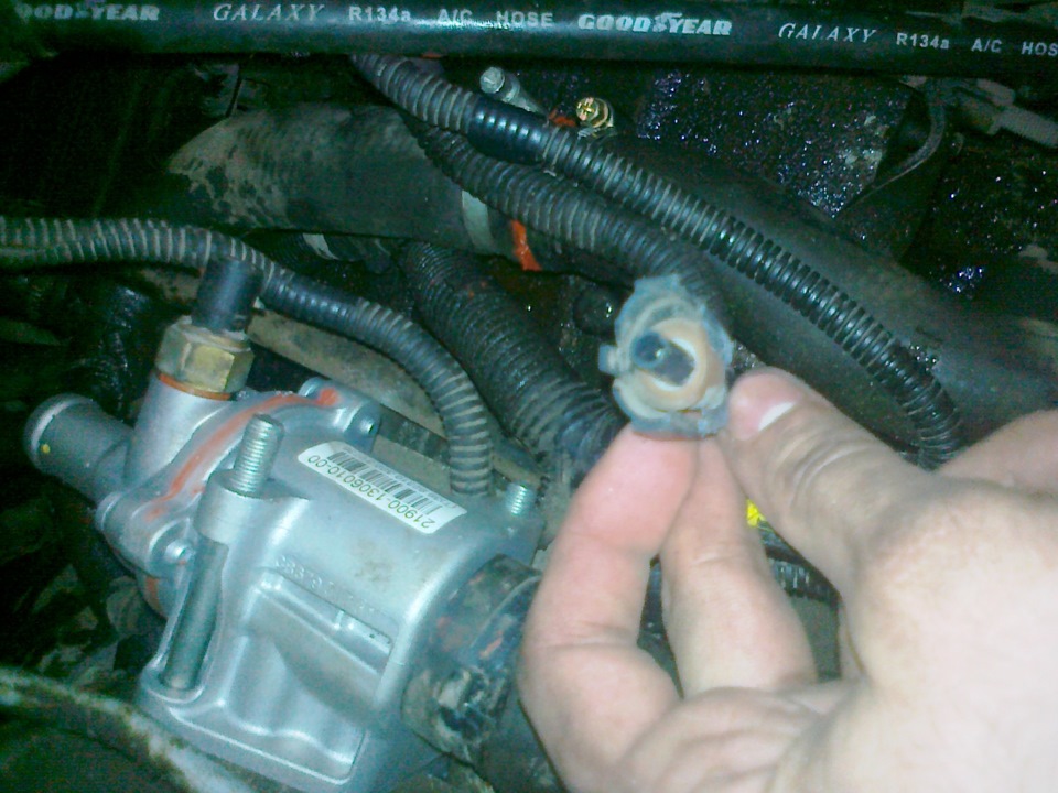 Поставил термостат и сообразил, что на датчик под ним нифига не налезает разъем. Крутил и так и так — не лезет. Пришлось мало надрезать корпус разъема.