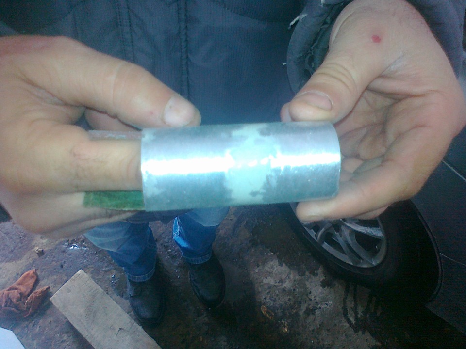 Для начала отрезал от трубки пылесоса трубу см 10 и сделал насечки по бокам, чтоб герметик лучше держался.