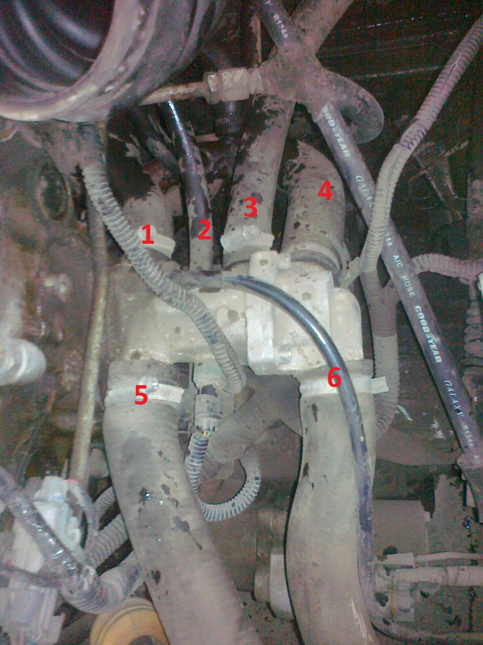 3. Извлеките патрубки, начав с размещенных в нижней части, отвечающих за соединение радиатора и расширительного бачка, равномерно переходя к иным.