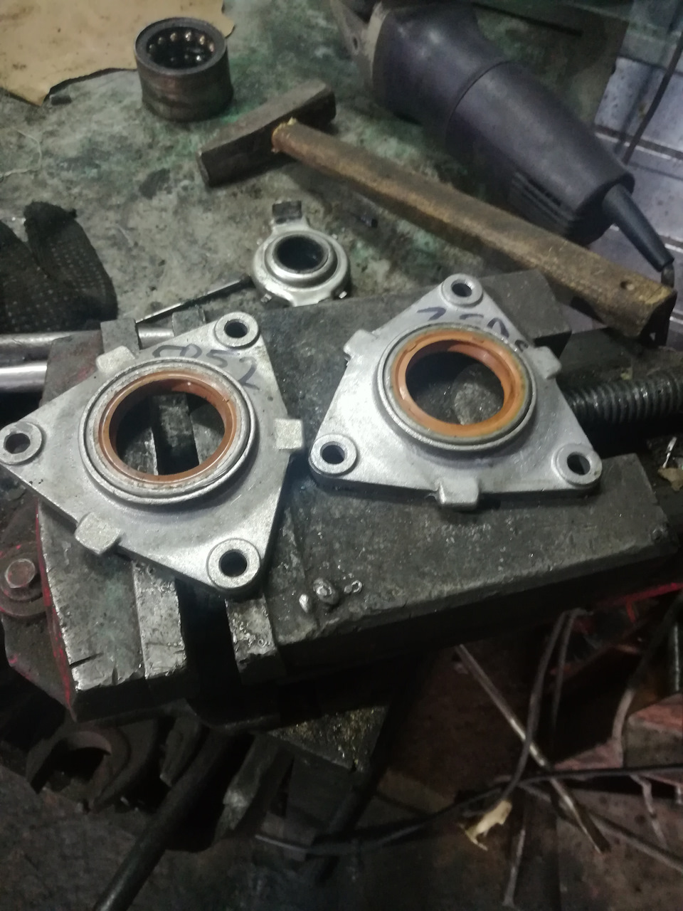 Дальше запресовал сальники в крышки редуктора. Правда пришлось обратится к помощи ратфиля и пройти один край, потому что свойство литья, хотелось бы лучше.