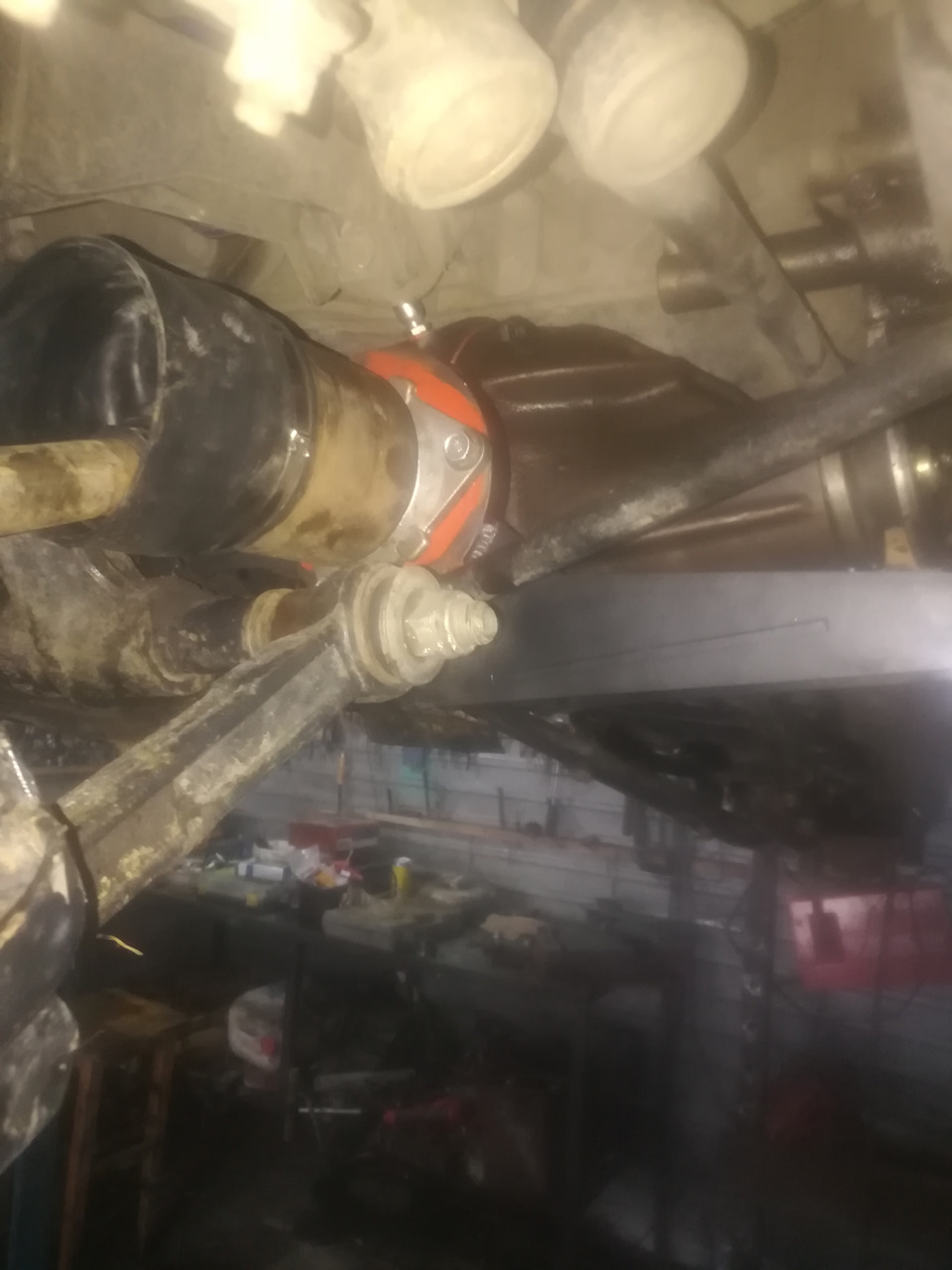 Не понимаю где я так, но справа отбойник все вырвало, слева отбойник вбило в пространство крепления. Сальники на верхних рычагах под подмену, нижние пока живые. Потек шток сцепления. Шаровые пока впорядке, подшипники фронтальные пока побегают а вот задние пора поменять, уже загудели. Также нашел что длинноватые тяги болтаются и предпосылкой явилось то, что они (из лифт набора) по сальнику уже чем обычные, открутил, подложил шайбы вовнутрь, затянул.