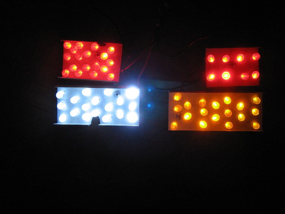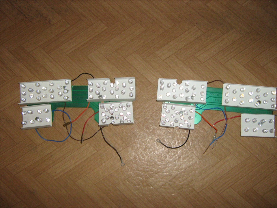 Все три сектора фары смонтированы на общую плату, изготовленную из стеклотекстолита шириной 1,5 мм вырезав его по форме, буквально соответственной контуру задних фар. Опосля тестирования нескольких типов светодиодов были использованы Super Flux (с линзой) с углом луча 80 градусов, поперечником 5 мм и током 20 мА.