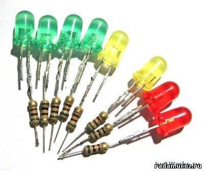 Тут принципиально только обеспечить очень надежное крепление всех применяемых частей и конкретно проводки, которые при мощной вибрации могут получить повреждения. Светодиоды с проводами соединяются только пайкой. Питание же постоянно подключается наряду с неотклонимым применением резисторов. Крайние нужны для ограничения тока, протекающего через светодиодные элементы. Хорошо подобрать резисторы под монтируемые диоды обыкновенному автолюбителю будет тяжело. Потому их лучше получать вкупе со светодиодами (в комплекте).