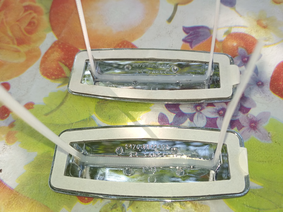 Хомутом притянул оставшуюся в крыле проводку и установил заглушки, которые тоже самоклеящиеся. За ранее, опять-таки, все обезжирил.