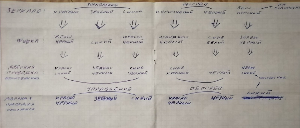 Кто не разобрался, вот схема подключение боковых зеркал SE на Lada Priora: